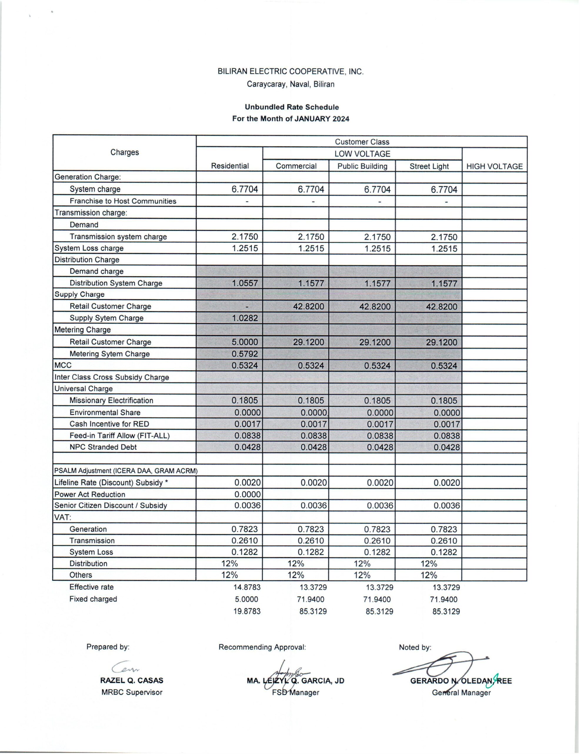January 2025 Effective Rates: