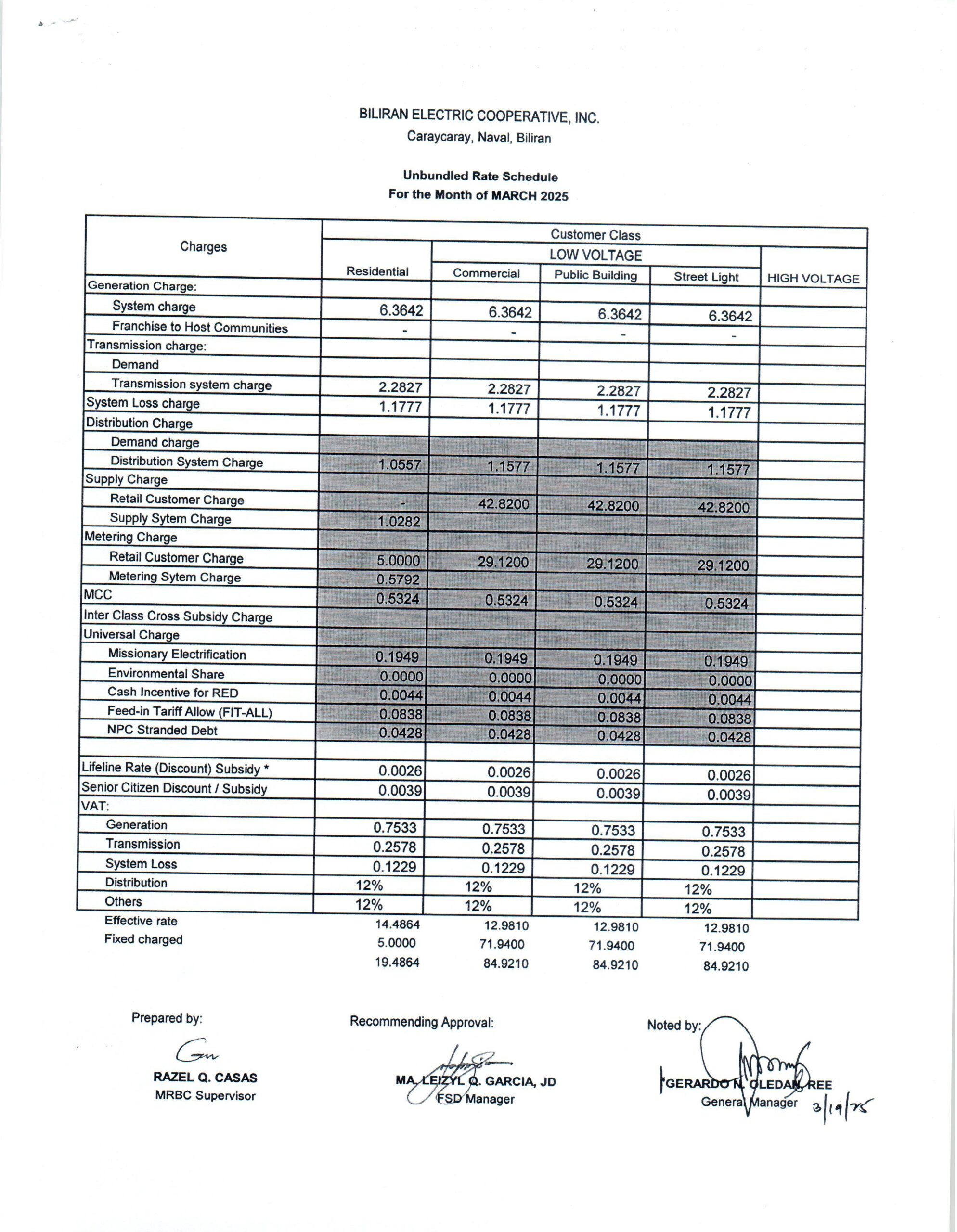 March 2025 Effective Rates: