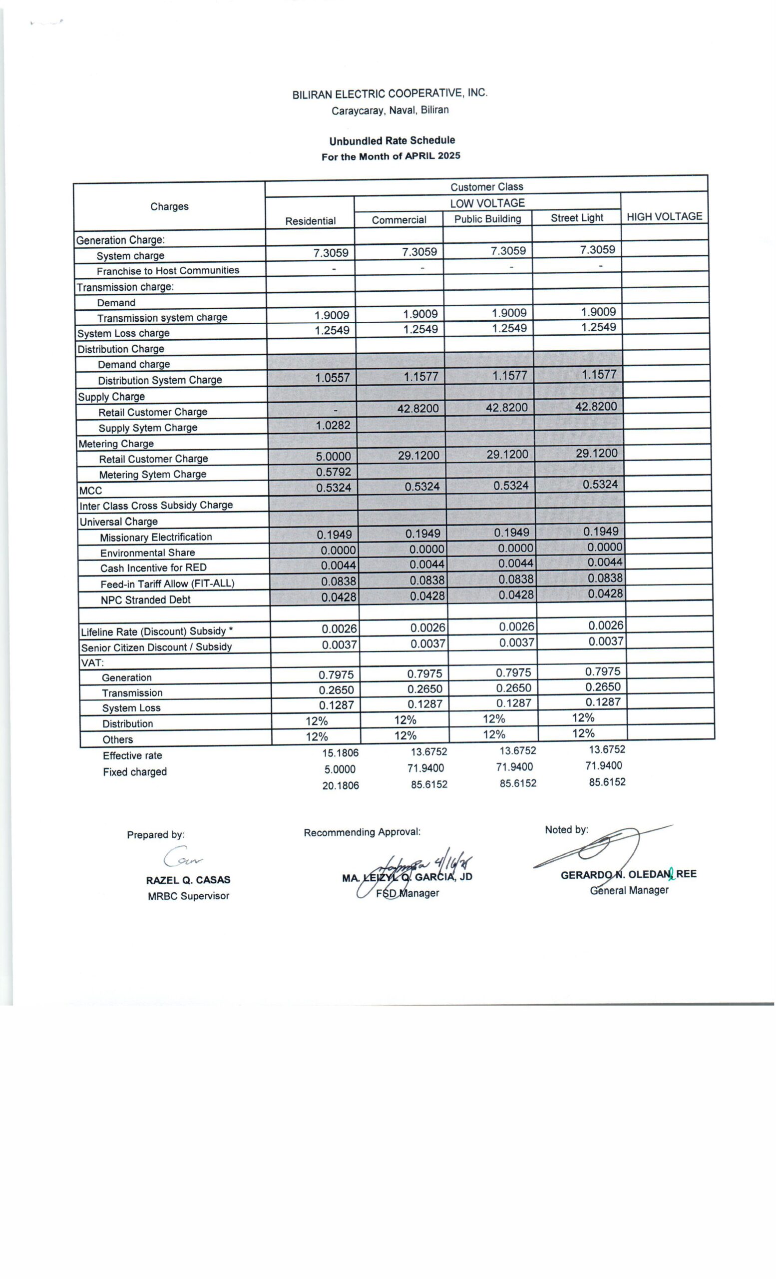 April 2025 Effective Rates: