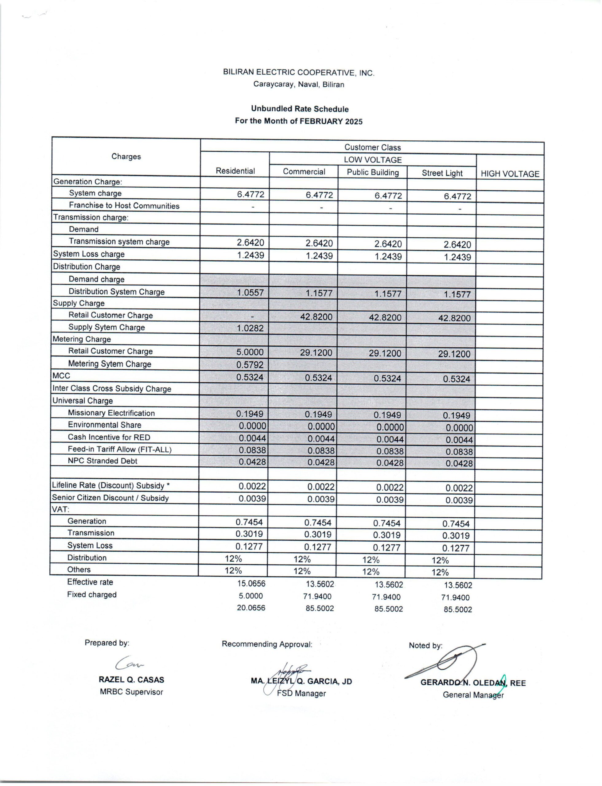 February 2025 Effective Rates: